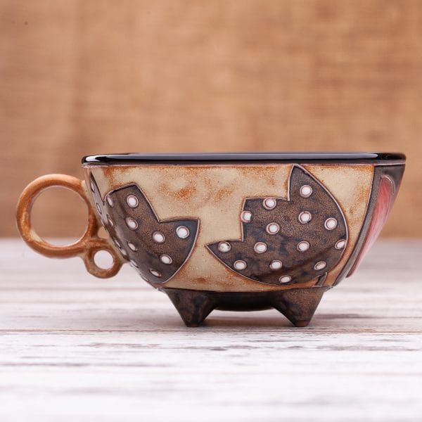 Този ръчно изработен керамичен продукт на Гаппа Хендмейд може да се използва като чаша за чай, купичка за дребни сладки и бонбони, а защо не и за Вашето топло и студено мляко.
