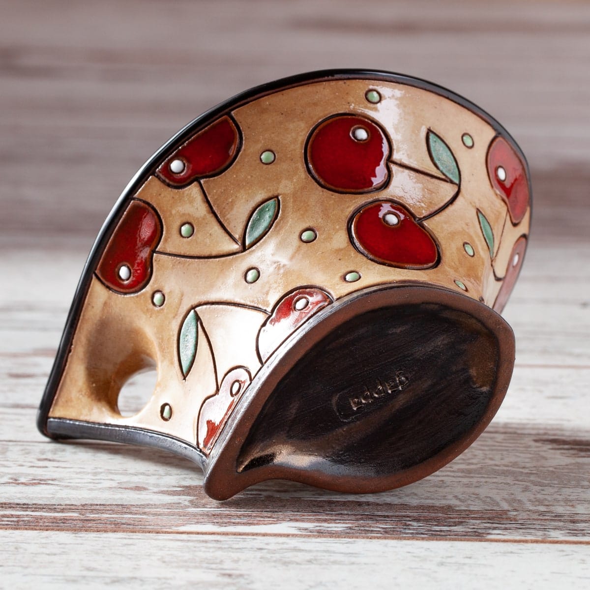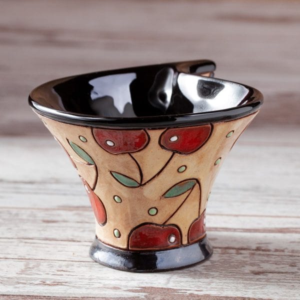 Нашето ателие Ви предлага ръчно изработена керамична чаша във формата на капка с красив мотив.