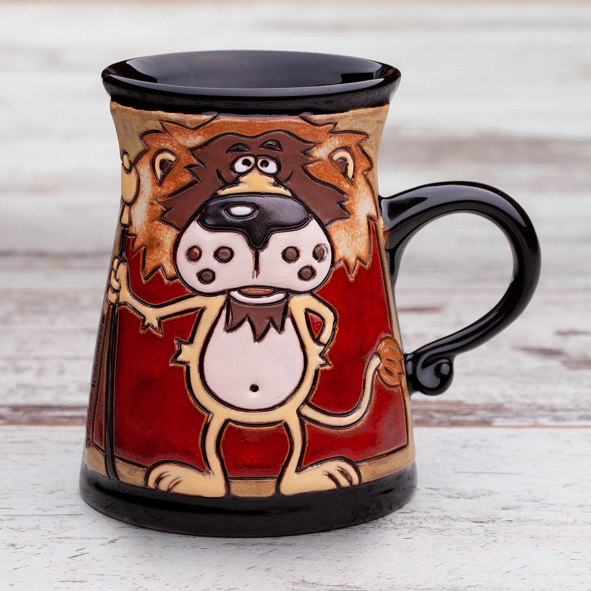 Нашият царски лъв е изрисуван и с красив жезъл.С огромната си буйна грива той вселява страх и почитание у всеки.Тази чаша е подходящ подарък за авторитетни и силни личности,които никога не се поддават на трудности и изпитания.