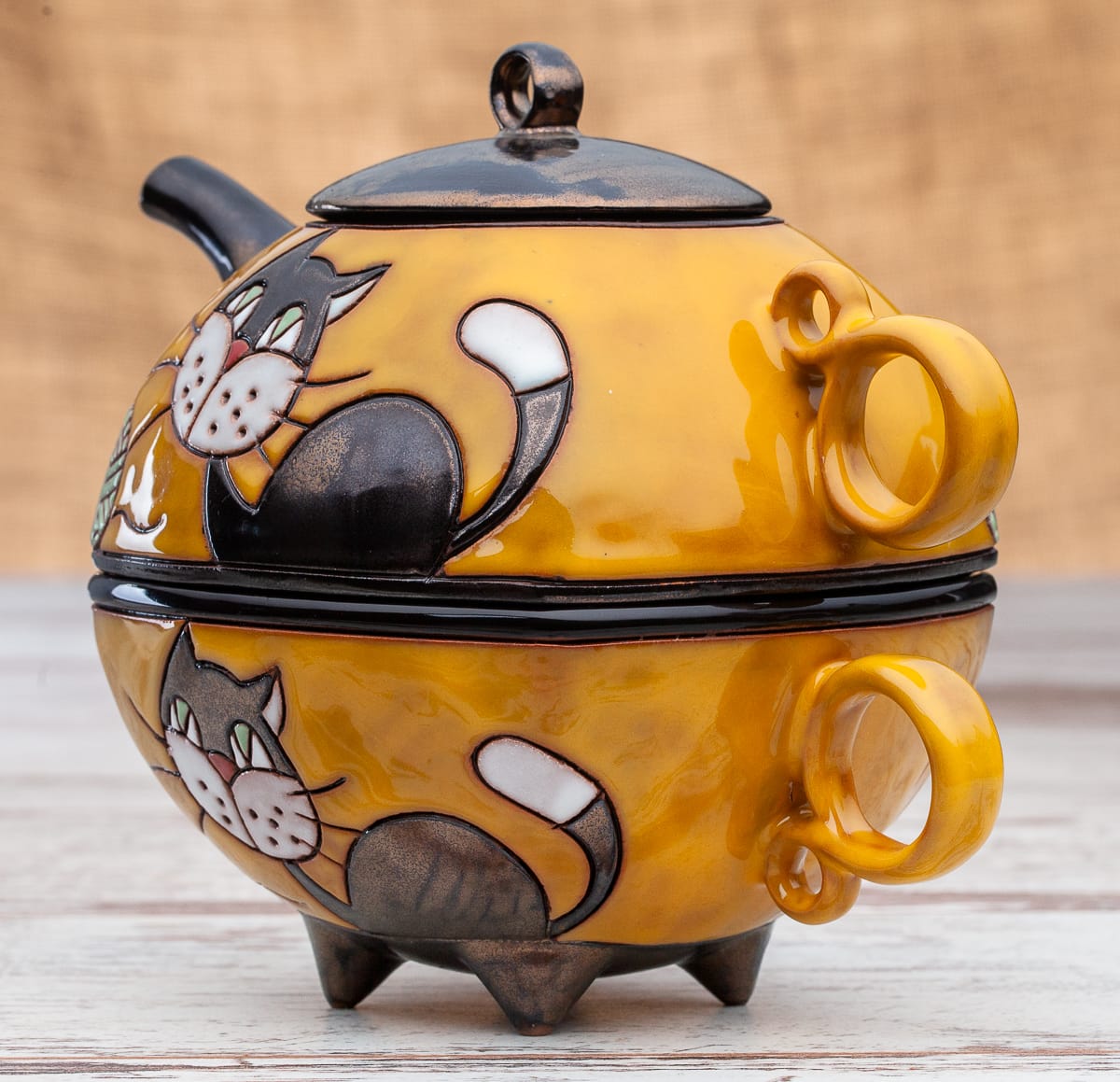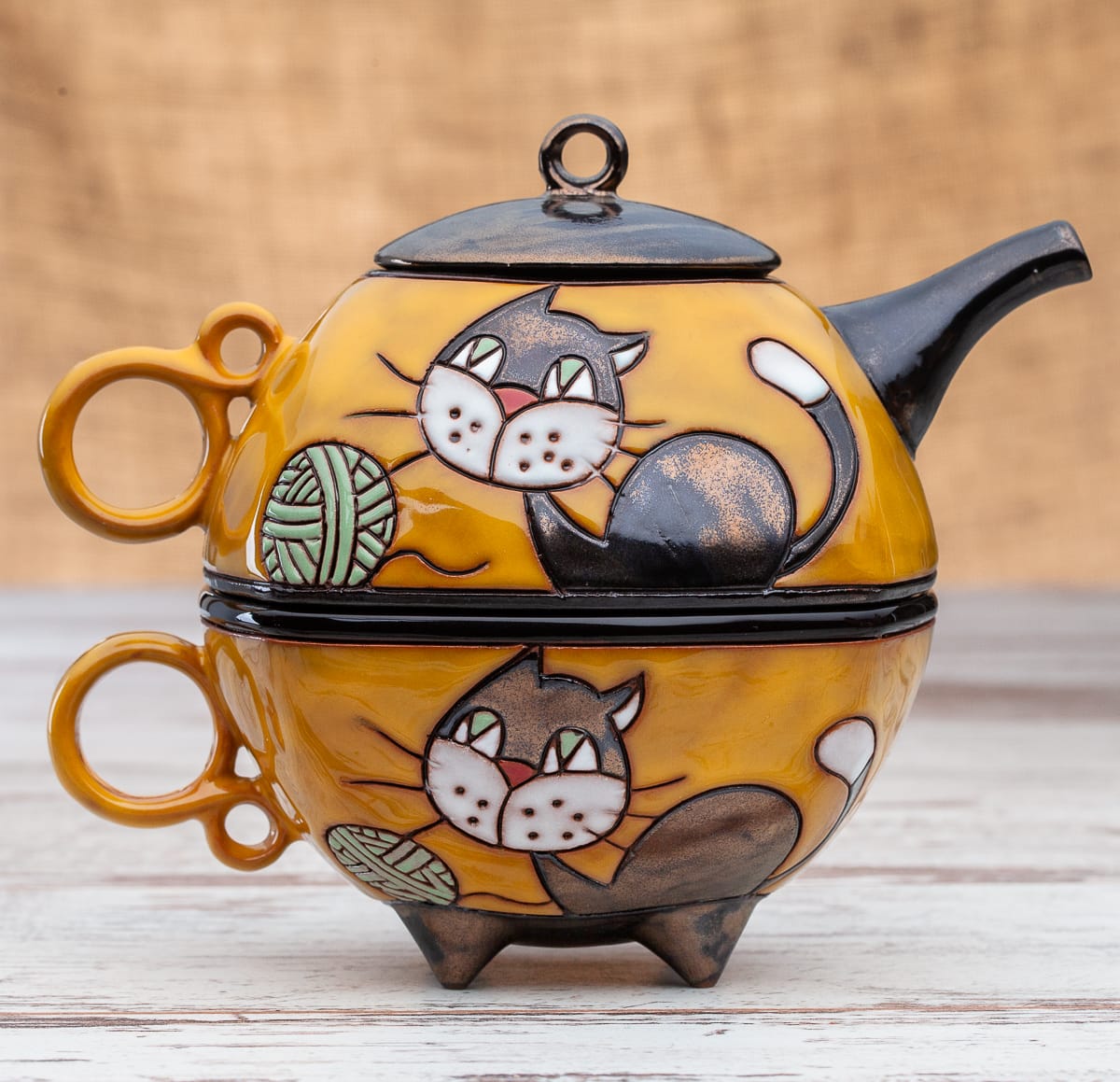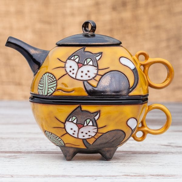 Гаппа Хендмейд има удоволствието да Ви предложи ръчно изработен комплект, който се състои от две части: керамичен чайник и керамична чаша. Двата продукта са изрисувани в съответния мотив, които могат да бъдат избирани според интериора във всеки дом.