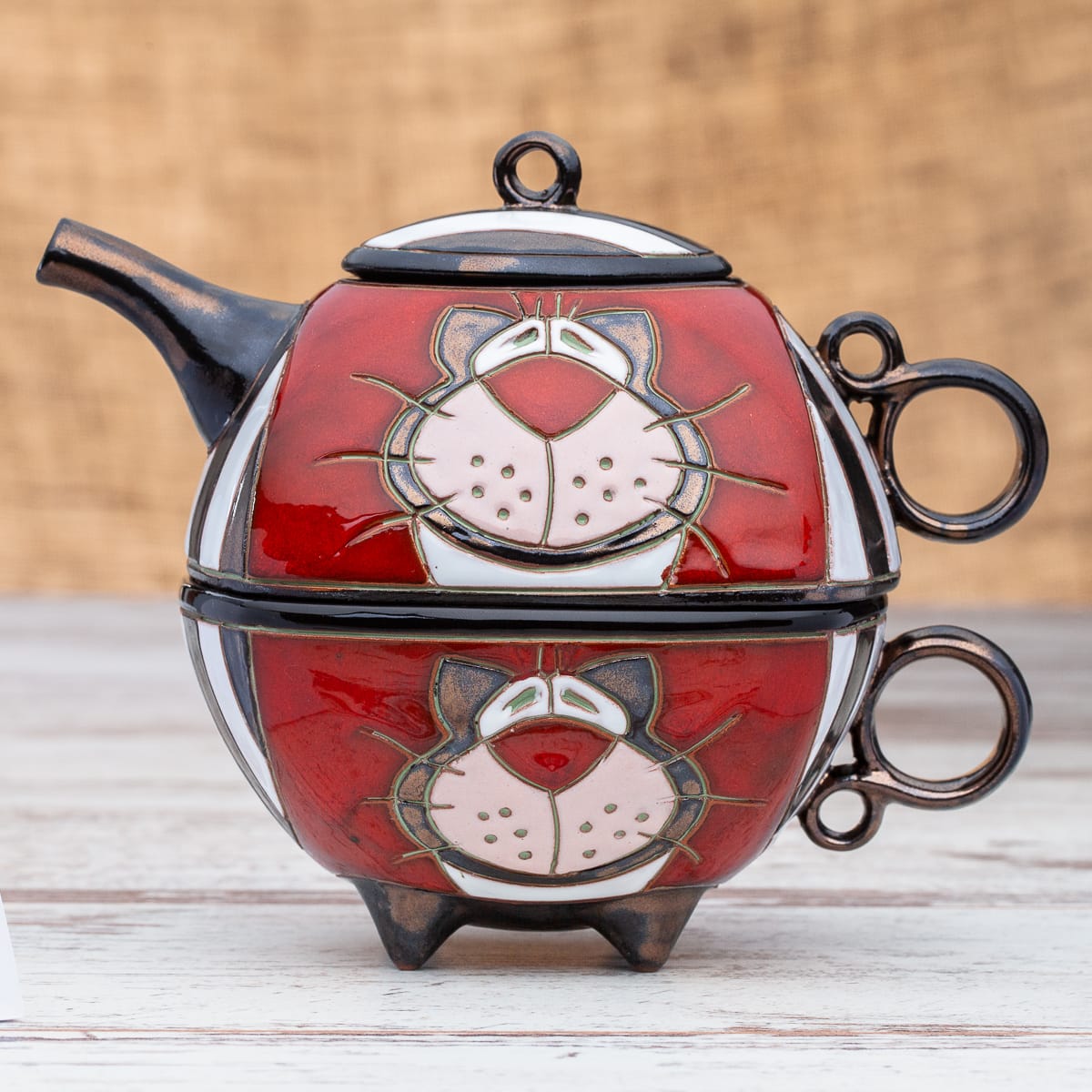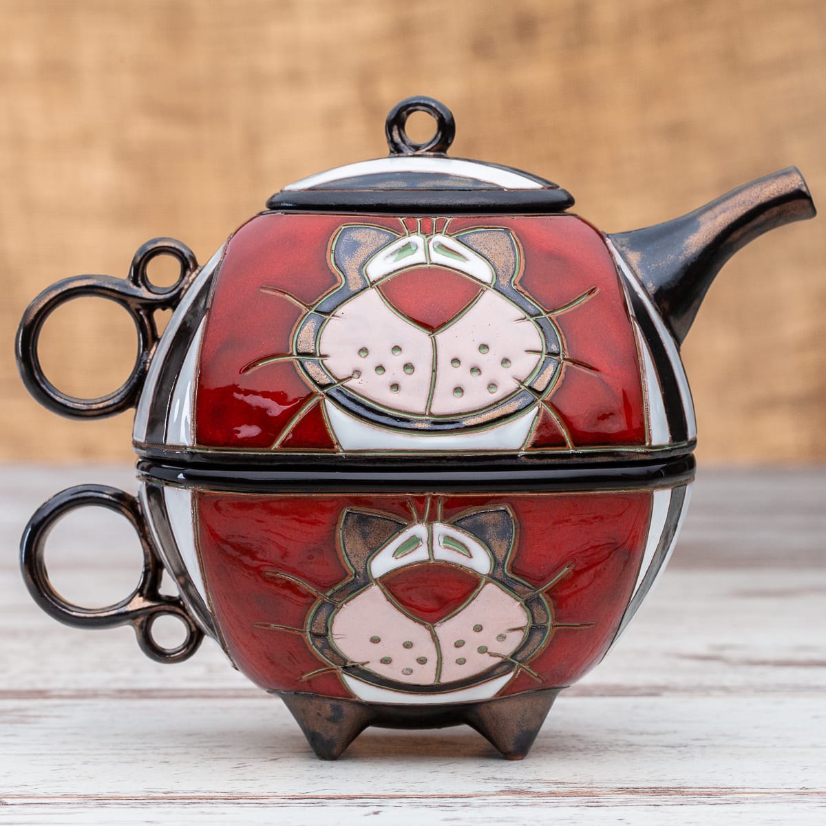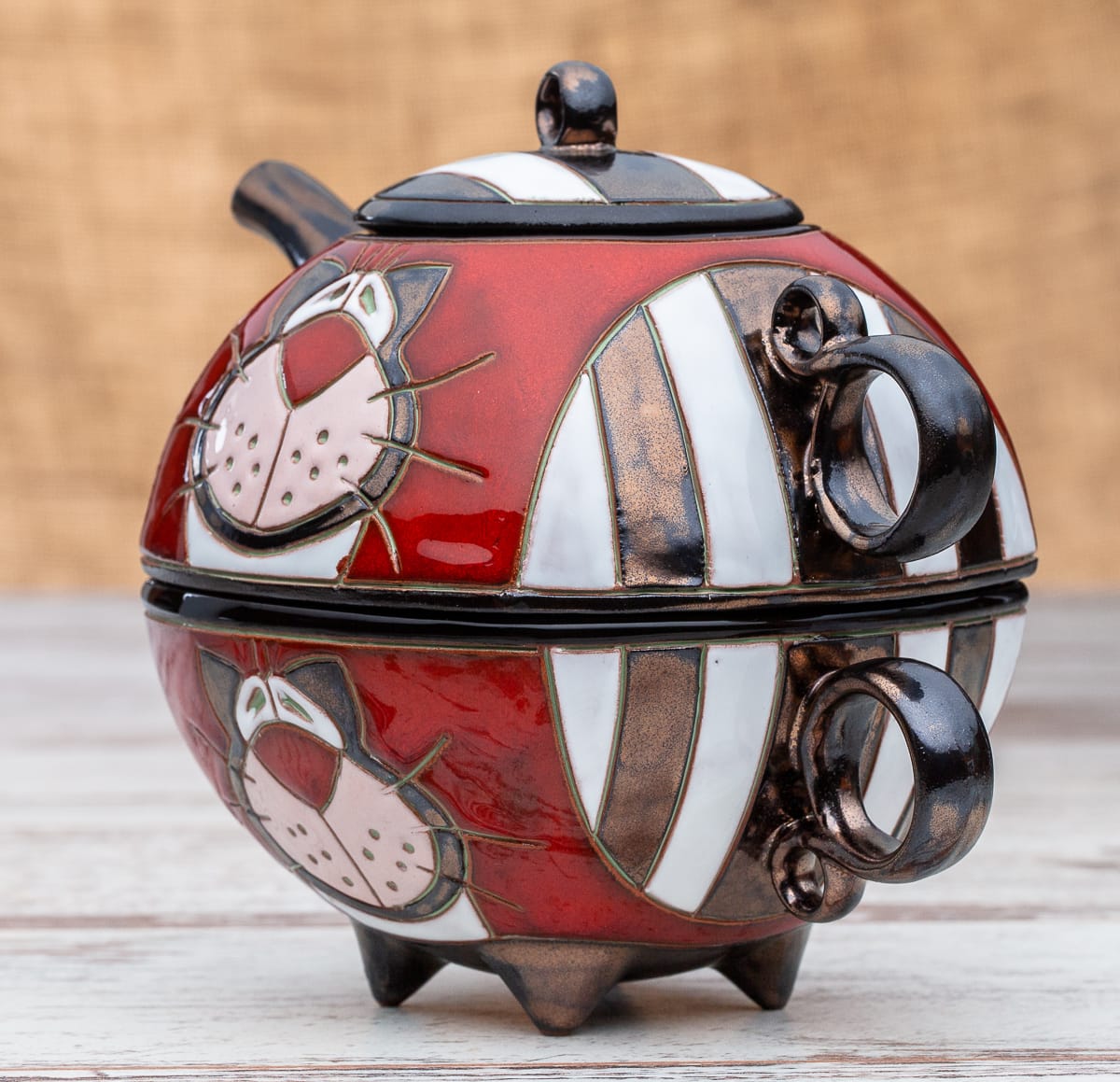 Гаппа Хендмейд има удоволствието да Ви предложи ръчно изработен комплект, който се състои от две части: керамичен чайник и керамична чаша. Двата продукта са изрисувани в съответния мотив, които могат да бъдат избирани според интериора във всеки дом.