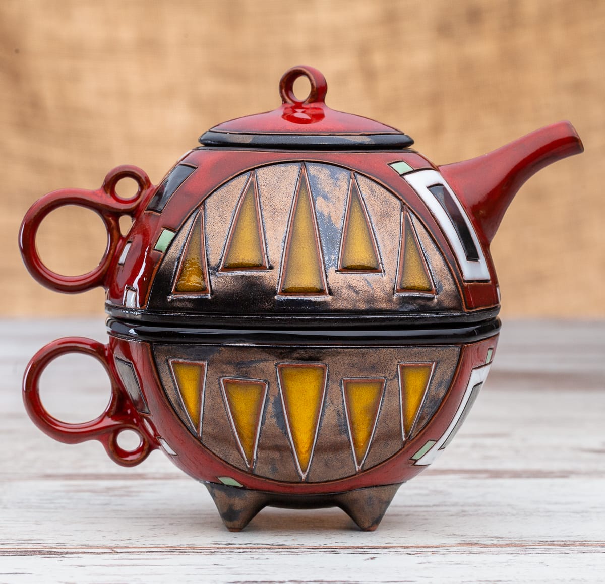 Гаппа Хендмейд има удоволствието да Ви предложи ръчно изработен комплект, който се състои от две части: керамичен чайник и керамична чаша. Двата продукта са изрисувани в съответния мотив, които могат да бъдат избирани според интериора във всеки дом.