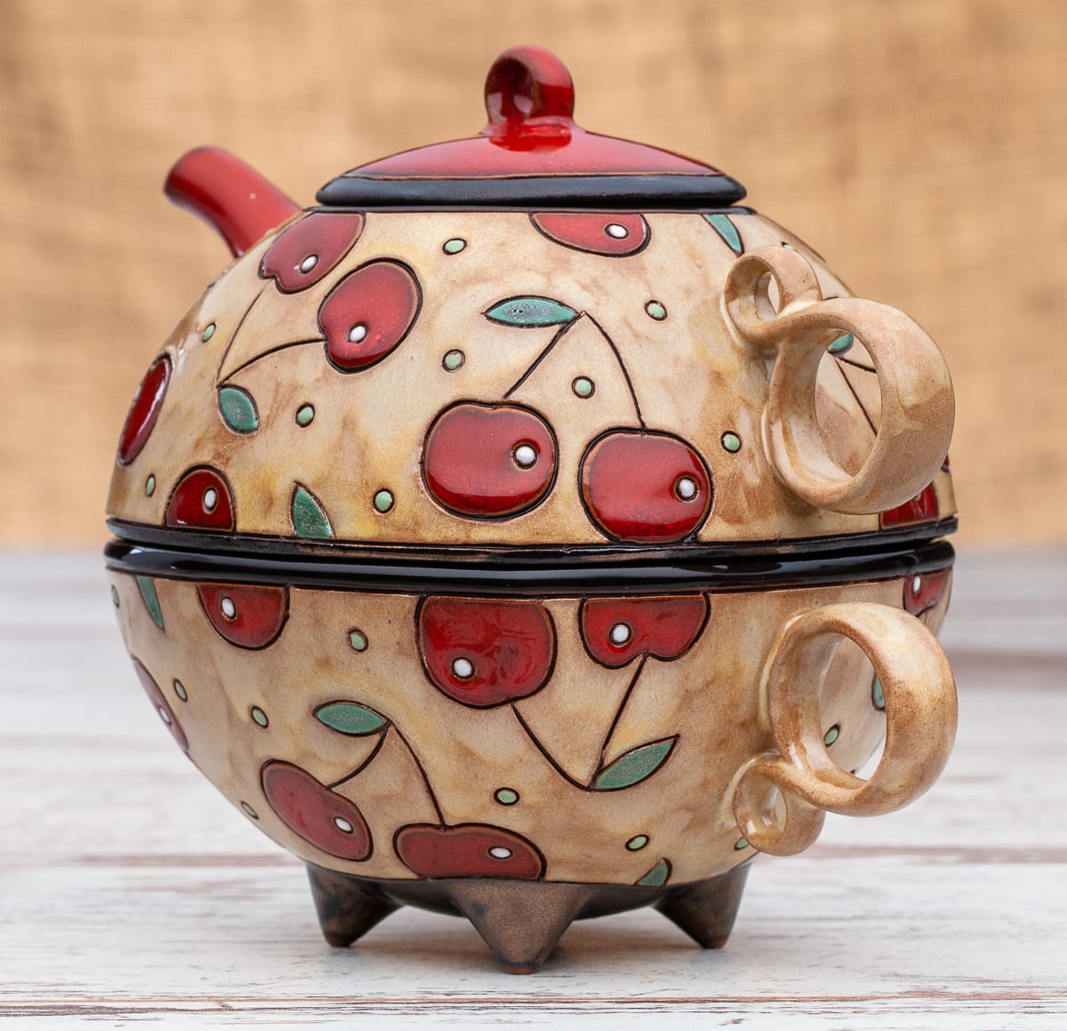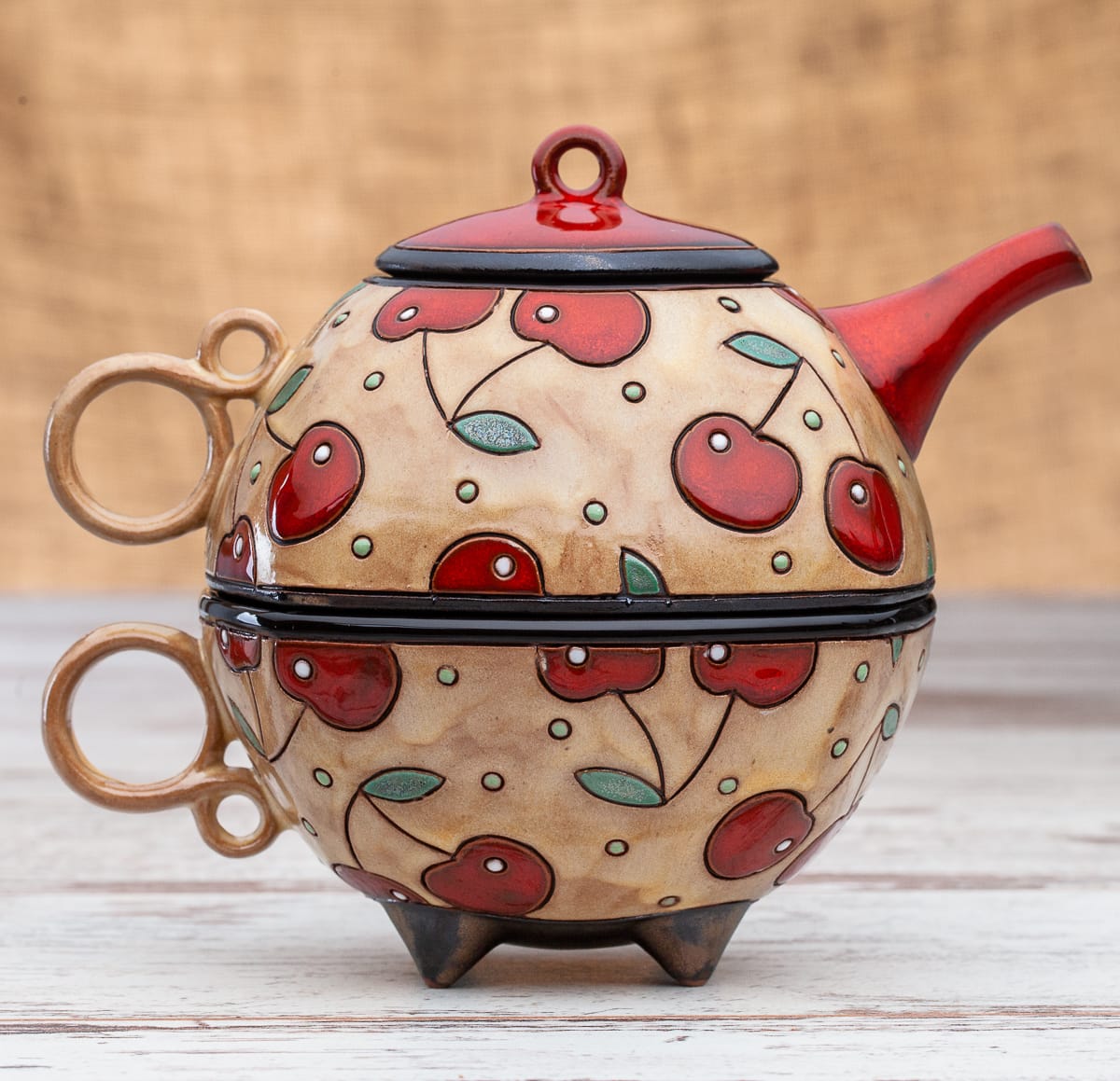 Гаппа Хендмейд има удоволствието да Ви предложи ръчно изработен комплект, който се състои от две части: керамичен чайник и керамична чаша. Двата продукта са изрисувани в съответния мотив, които могат да бъдат избирани според интериора във всеки дом.